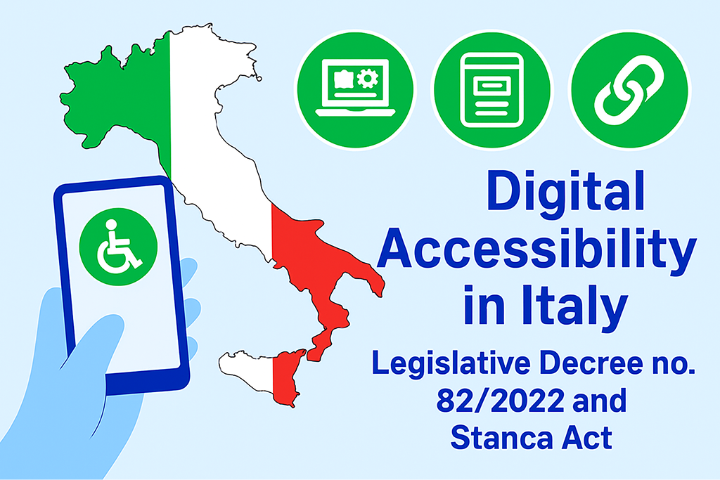 L'Italie est depuis longtemps à la pointe de l'accessibilité numérique en Europe, avec sa législation fondamentale, Loi 4/2004, mieux connu sous le nom de Loi Stanca (Legge Stanca), datant de 2004. Cette loi novatrice a établi le droit pour tous les citoyens d'accéder à des informations et à des services en ligne, jetant ainsi les bases d'une société numérique plus inclusive.